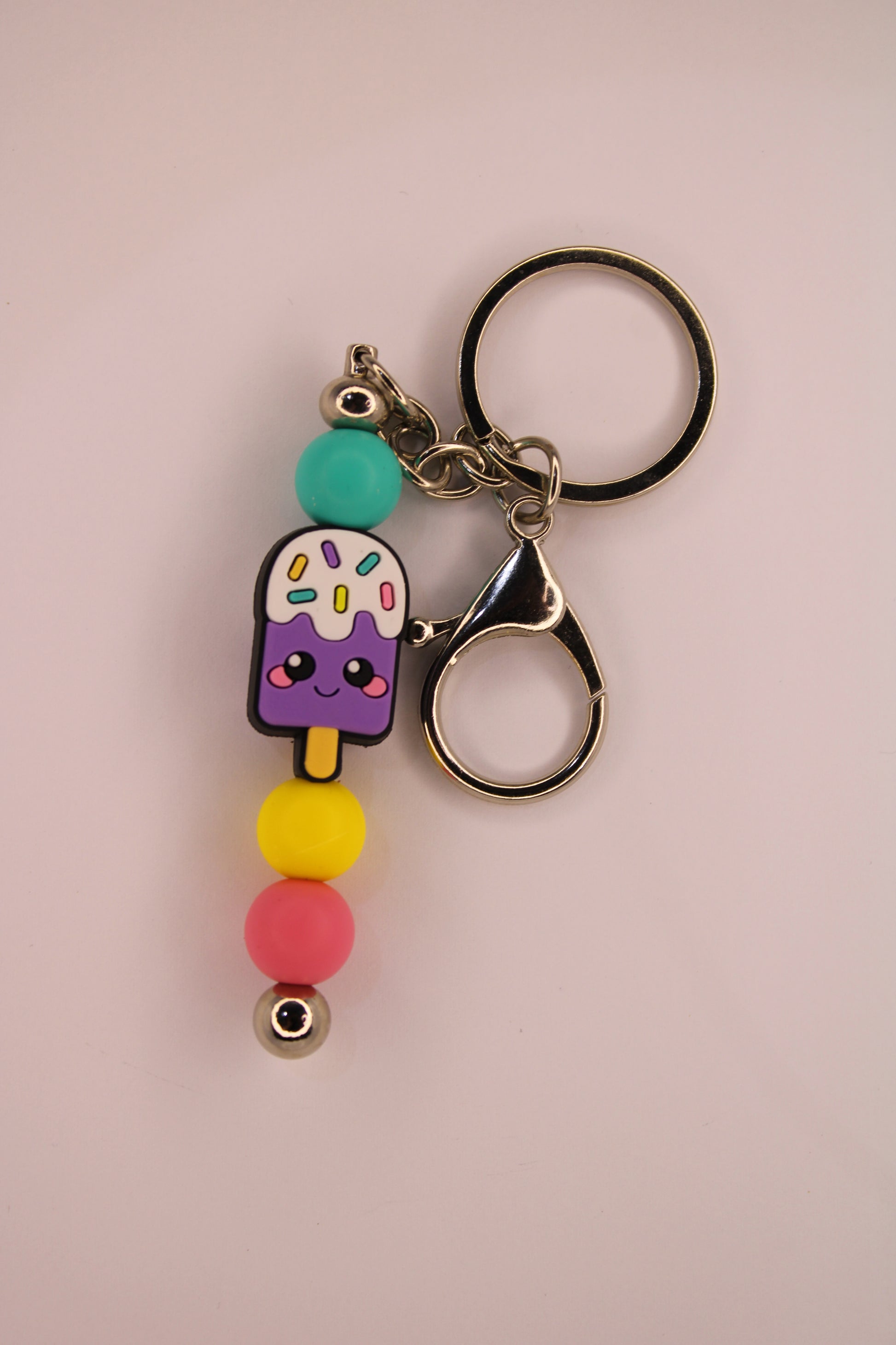 Discover the charm of our Handmade Purple Ice-cream Keychain, a delightful accessory designed with both durability and love. Each piece is crafted with a strong quality metal keychain and adorned with food safe quality silicone beads, ensuring it's as safe as it is stylish. Ideal for adding a touch of whimsy to your keys or bag, this keychain embodies the local craftsmanship that OBTA prides itself on. Support local artisans by choosing a product made with dedication and care.